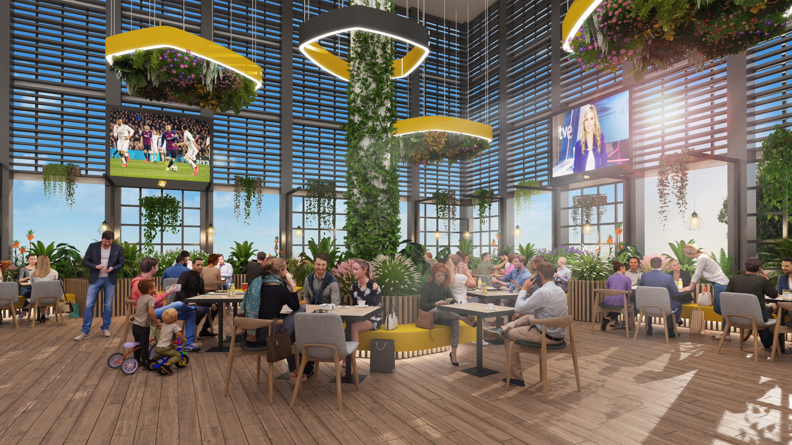In addition, the outdoor terrace will be expanded, which will be completely renovated, reforming its external façade and updating its image with new furniture, as well as a significant increase in vegetation. As an example, the installation of bioclimatic slats, which will allow the regulation of light and temperature, will integrate the feeling of open air throughout the plant.